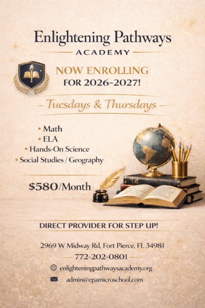 Enlightening Pathways Academy offers a thoughtfully designed academic program for students in grades 1st–8th, meeting on Tuesdays and Thursdays. This program provides a strong foundation in core subjects including Math, ELA, Hands-On Science, and Social Studies/Geography—all taught in a supportive, small-group environment.